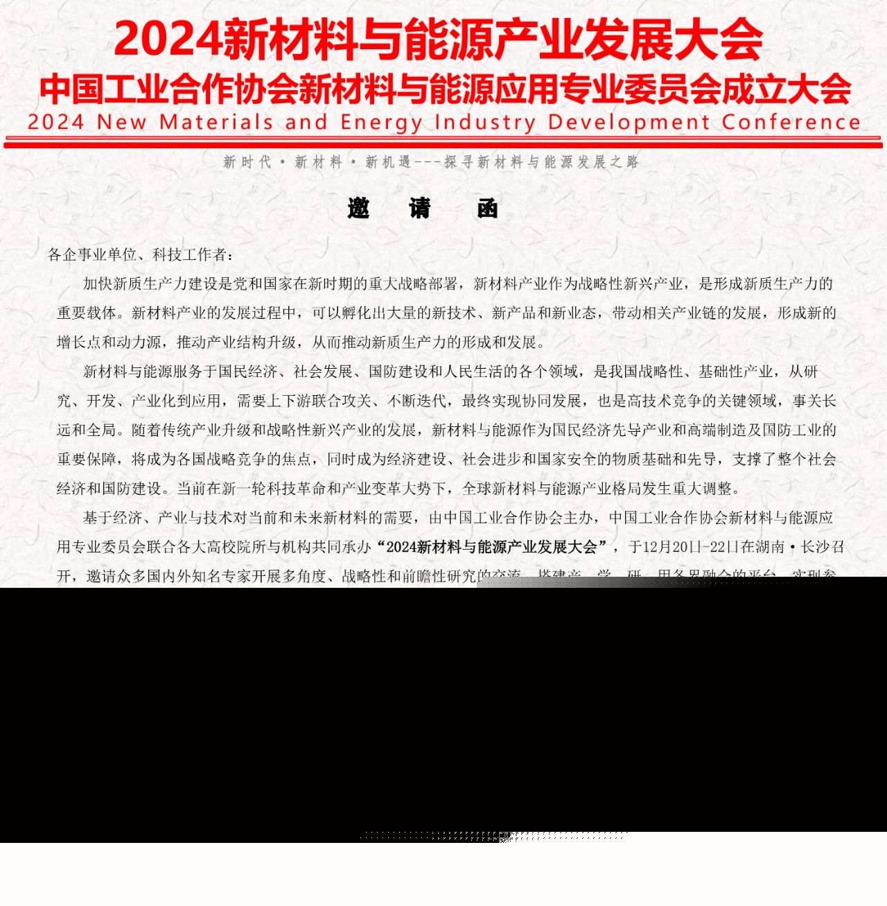 【行業會議】2024新材料與能源產業發展大會會議通知