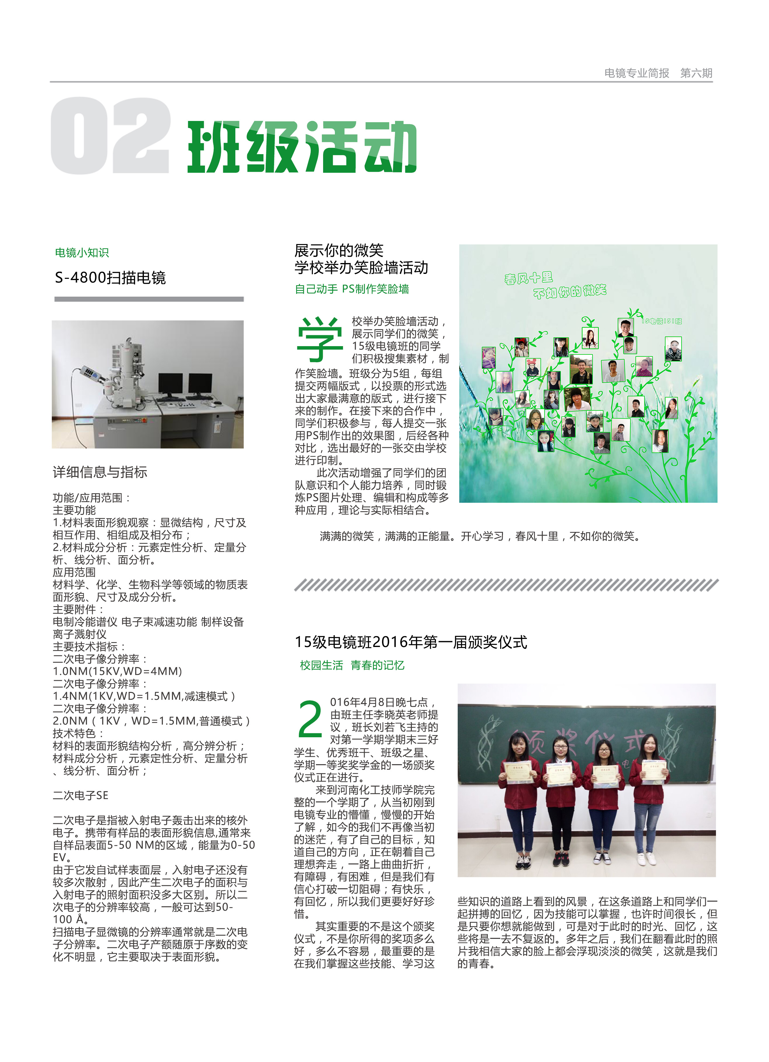 河南化工技師學院與中鏡科儀校企合作電鏡專業簡報2016年5月第六期