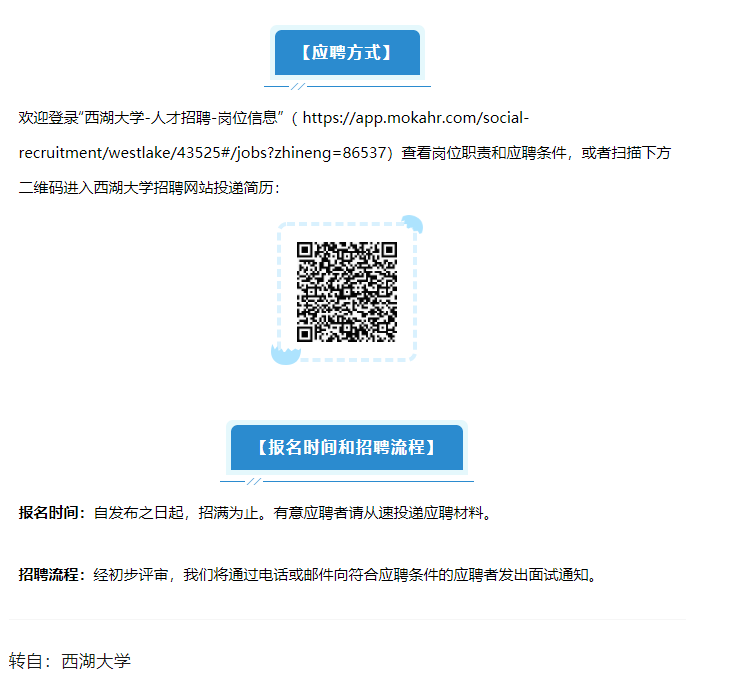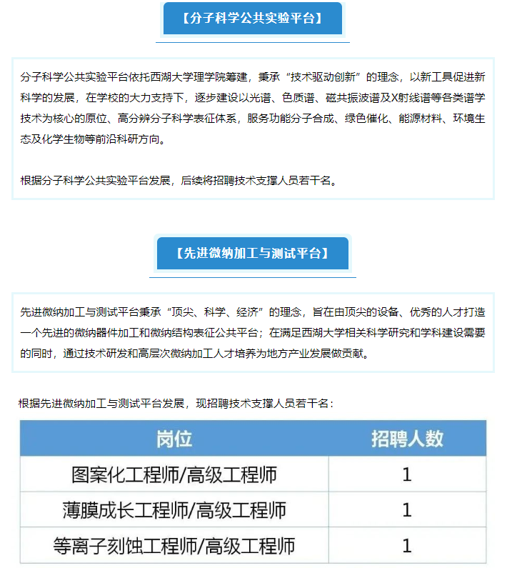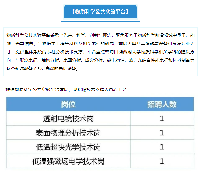 【行業(yè)招聘】分絲析縷,明見萬里 | 西湖大學(xué)技術(shù)支撐崗位招聘