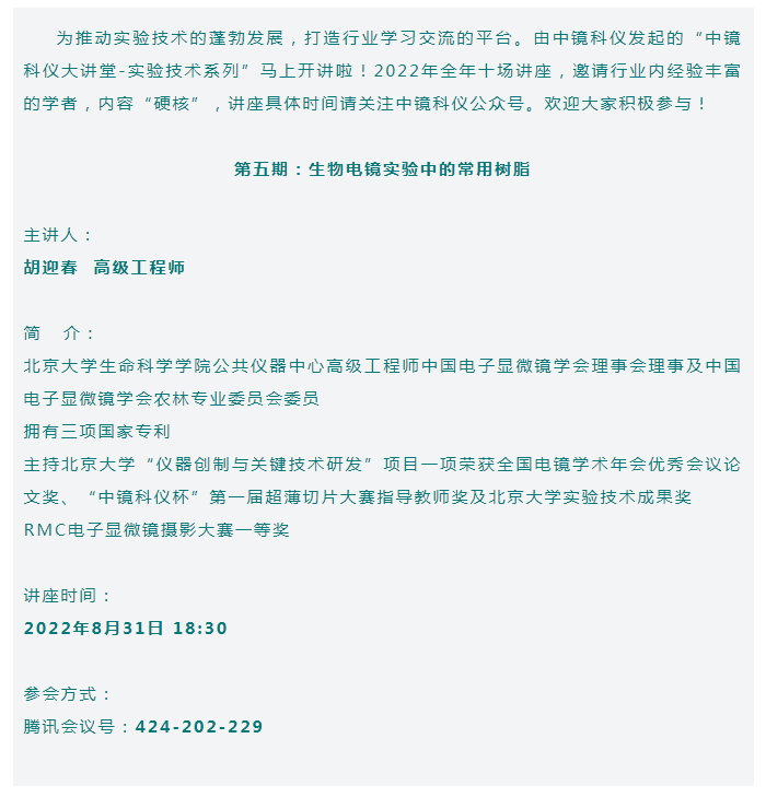 【行業(yè)會(huì)議】中鏡科儀大講堂-實(shí)驗(yàn)技術(shù)系列(第五期)