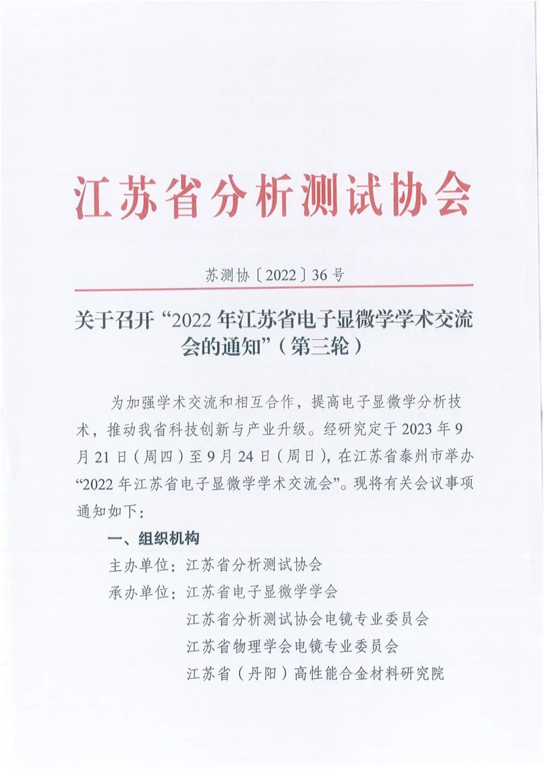 【行業會議】2022年江蘇省電子顯微學學術交流會通知(第三輪)