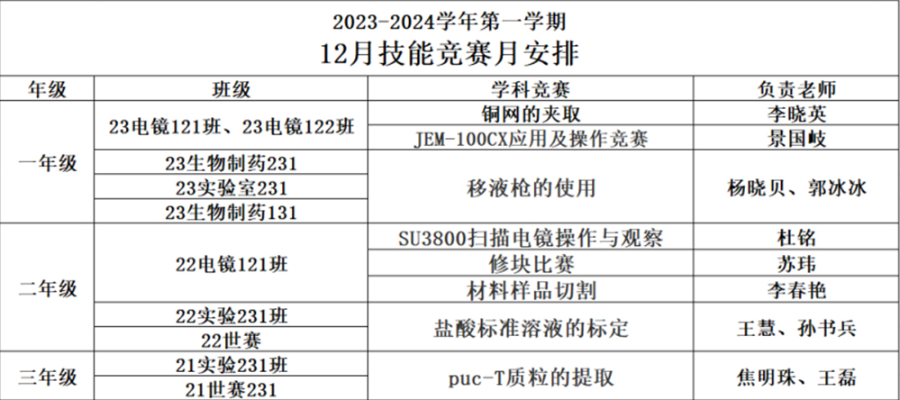 本次技能競賽月共開展了8個項目,競賽項目覆蓋實驗技術(shù)學(xué)院全體學(xué)生。競賽項目有:銅網(wǎng)的夾取、JEM-100CX應(yīng)用及操作競賽、移液槍的使用、SU3800掃描電鏡操作與觀察、修塊比賽、鹽酸標準溶液的標定、puc-T質(zhì)粒的提取、材料樣品切割。