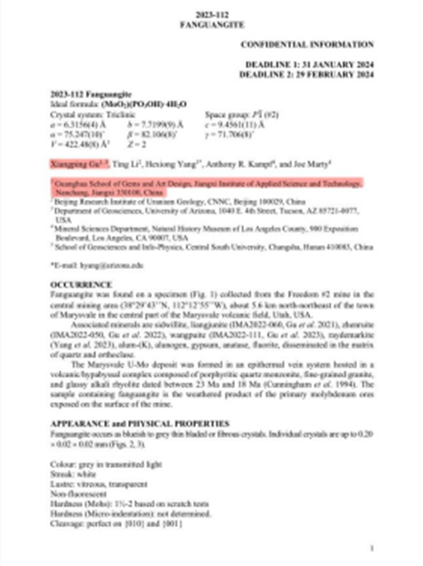 【新聞資訊】喜報!中國地質學家范光,獲“范光鉬礦(Fanguangite)”國際礦物學協會(IMA)新礦物命名