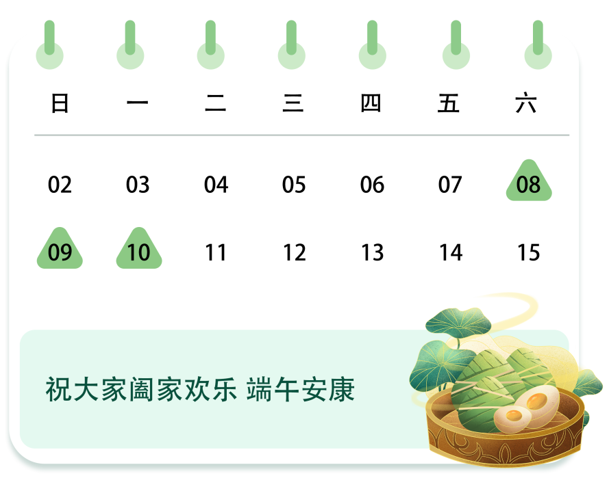 五月初五,佳節端午, 愿你夏日清平,喜樂安康。 端午節為每年農歷五月初五,又稱端陽節,是中國四大傳統節日之一,在這一天,人們會賽龍舟、吃粽子、掛艾草等。端午文化在世界上影響廣泛,世界上一些國家和地區也有慶賀端午的活動,2009年9月,聯合國教科文組織正式批準將其列入《人類非物質文化遺產代表作名錄》,端午節成為中國首個入選世界非遺的節日。 放假通知 中鏡科儀端午節放假時間: 2024年6月8日(星期六)至2024年6月10日(星期一)放假,共3天。 2024年6月11日(星期二)正常上班。 假期商城不打烊,客服不下線,如有需求歡迎隨時聯系! 聯系我們 公司官網:www.jrgu.cn 免費熱線/企業QQ:400 001 9621 市場部郵箱:zjky@emcn.com.cn 官方商城:http://www.emcn.net.cn/ 地區負責人聯系方式 北京地區:張經理 18642002287 南京地區:鄭經理 15050567596 廣州地區:鄭經理 13724052586 西安地區:馬經理 13324587366 沈陽地區:王經理 15140221479 鄭州地區:唐經理 15237816868 官方商城|點擊二維碼咨詢購買