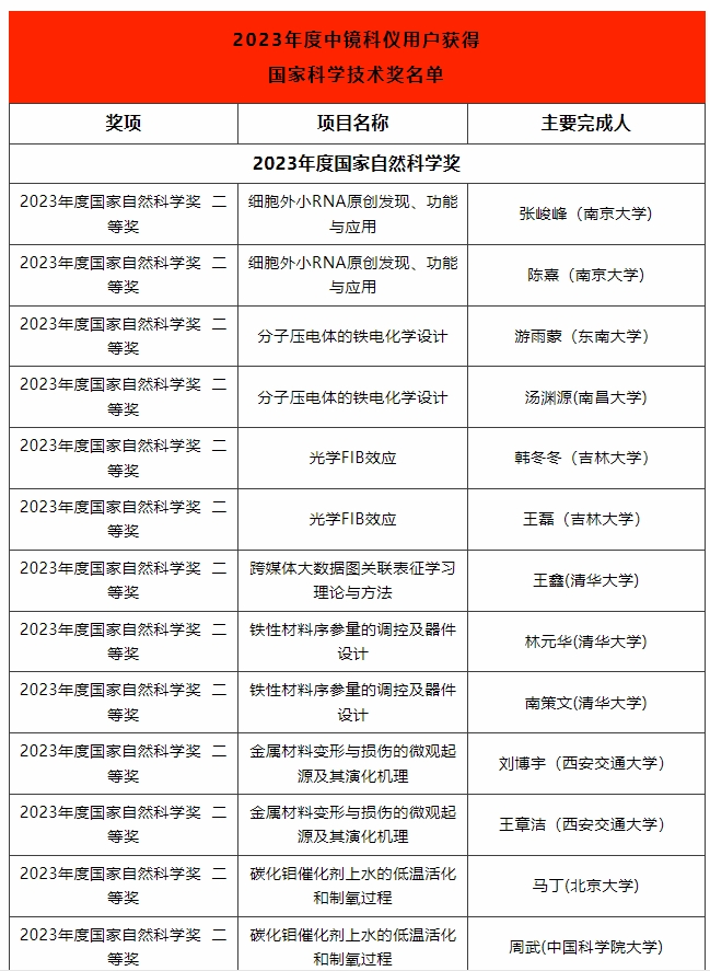 【新聞資訊】熱烈祝賀中鏡科儀用戶獲2023年度國家科學技術獎