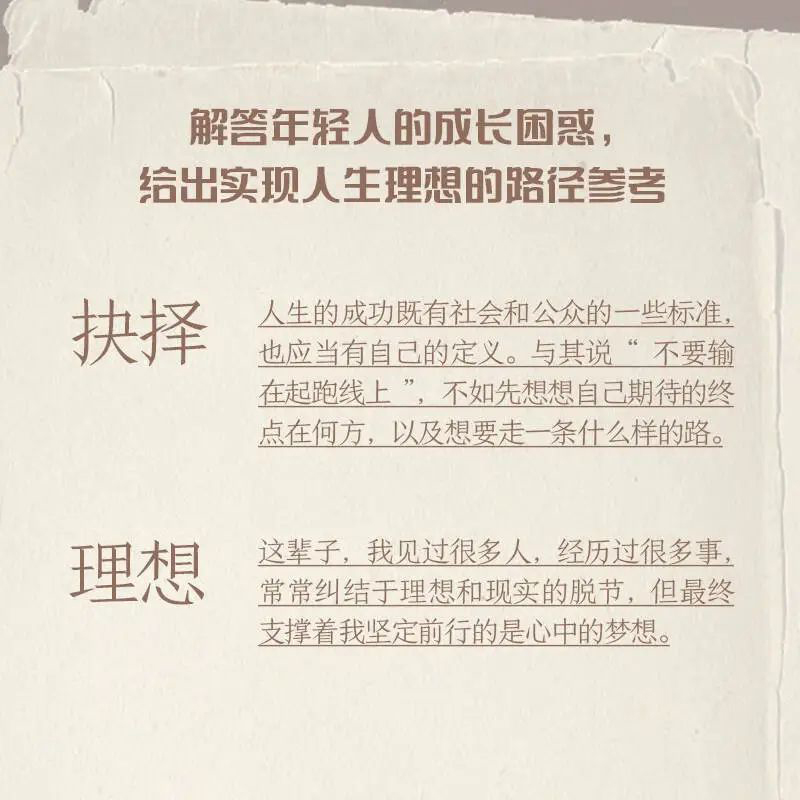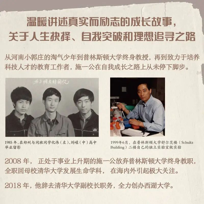 免費 贈書 為什么要閱讀? 因為每一本書都像一扇任意門 想去哪里,都由你自己決定 無法經(jīng)歷的人生,書籍會帶你相遇 叮!請查收這份「驚喜禮遇」 中鏡科儀贈書活動來啦! 喜歡的書友千萬別錯過! (文末有驚喜) 《自我突圍》 向理想前進! 西湖大學校長、中國科學院院士 作者簡介 施一公 1967年出生于河南鄭州,生物學家,西湖大學首任校長,中國科學院院士,美國國家科學院外籍院士,美國藝術與科學院外籍院士。 1989年獲清華大學生物科學與技術系學士學位,1995年獲美國約翰斯·霍普金斯大學分子生物物理學博士學位,1998—2008年歷任美國普林斯頓大學分子生物學系助理教授、副教授、教授、講席教授,2008—2018年全職回到母校清華大學任教,曾任副校長。 內(nèi)容簡介 2008年,正處于事業(yè)上升期的施一公放棄普林斯頓大學終身教職,全職回母校清華大學發(fā)展生命學科,在海內(nèi)外引起較大關注。2018年,他辭去清華大學副校長職務,全力創(chuàng)辦西湖大學。 他在56年的人生歷程中,總是做出讓大多數(shù)人難以理解的抉擇。是什么促使他一次次突破自我?如何發(fā)揮理想的力量,實現(xiàn)人生理想的路徑又是什么?相信讀者可以在這本書中找到答案。 這是一本關于成長、求學、教育、家庭、友誼、理想之書,既寫給自己,也寫給教育科研工作者,更是寫給青年學子,在追求理想的道路上步履不停,共同前行。 名人推薦 一個有血有肉、有情有義、有膽有識、志懷高遠、行必有果的一公躍然紙上。做人當如施一公! 韓啟德——中國科學院院士、中國科學技術協(xié)會名譽主席 這本書可以說是西湖大學創(chuàng)校校長的自傳,我們能從書中讀到新時代中國知識分子的內(nèi)心世界。 楊振寧——諾貝爾物理學獎獲得者、中國科學院院士 《自我突圍》帶我們進入了一個真實的施一公的世界,向我們展示了一個現(xiàn)實的理想主義者的自我突圍,一個當代中國科學家的人生觀。 錢穎一——清華大學文科資深教授、經(jīng)濟管理學院院長(2006-2018年) 相識一公十數(shù)年,亦兄亦友,愈久愈知,尤佩其堅韌。一公在我心中是一位奮進不息的理想主義者,這種理想主義體現(xiàn)在他的科研取向,也貫穿于他看待人生的視角。從他的成長經(jīng)歷中,我們不僅可以從多個層面了解其人,更可以感知當代中國科學家的探索精神和執(zhí)著追求。 潘建偉——中國科學院院士、中國科學技術大學常務副校長 一公校長的這本書既是一部成長史,也是一部思想史,成長的故事豐滿,思想的歷程精彩,堪稱一劑擺脫迷茫焦慮、實現(xiàn)自我驅(qū)動的良藥,學生、家長和教育工作者讀了,一定會在有意思和有意義中收獲滿滿。 劉彭芝——中學特級教師、人大附中、人大附中聯(lián)合總校原校長、現(xiàn)名譽校長 西湖大學寄托了太多人對更好教育的理想,作為領頭人的施一公也是一位理想主義者,但西湖大學畢竟剛剛出發(fā)不久,它的未來會是什么樣?或許我們可以從過去到現(xiàn)在的施一公身上找到一些答案,這本書就是一把鑰匙。 白巖松——央視主持人、資深新聞評論員 凡益之道,與時偕行。與一公結識已久,他的經(jīng)歷為不忘初心、砥礪前行、創(chuàng)新探索做了生動的注腳。這本書的心路歷程,相信能夠鼓勵更多年輕人點亮心中燈塔,不斷突破自我,玉汝于成,在成長路上有所收獲。 張磊——高領集團創(chuàng)始人兼首席執(zhí)行官 聯(lián)系我們 公司官網(wǎng):www.jrgu.cn 免費熱線/企業(yè)QQ:400 001 9621 市場部郵箱:zjky@emcn.com.cn 官方商城:http://www.emcn.net.cn/ 地區(qū)負責人聯(lián)系方式 北京地區(qū):張經(jīng)理 18642002287 南京地區(qū):鄭經(jīng)理 15050567596 廣州地區(qū):鄭經(jīng)理 13724052586 西安地區(qū):馬經(jīng)理 13324587366 沈陽地區(qū):王經(jīng)理 15140221479 鄭州地區(qū):唐經(jīng)理 15237816868